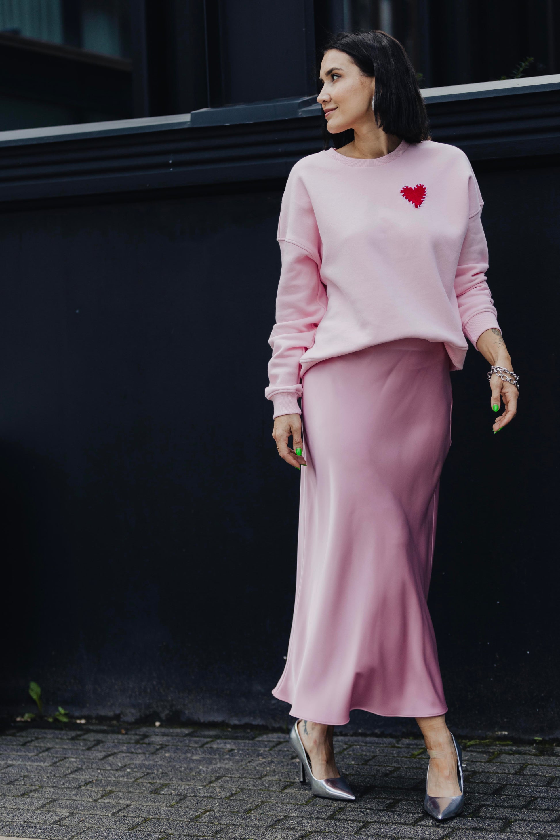 Our hearts have made a way into your hearts. Crop tops were a big hit so we've created cotton sweatshirts with a soft terrycloth heart sewn on the left side and 'have a kind day' embroidered on the sleeve.